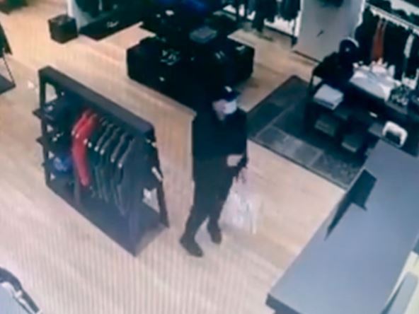 Na snimku sa nadzorne kamere vidi se momak koji nosi kesu sa odećom i koji, dok je još u radnji, rukom daje znak drugom da uđe, a nakon toga izlazi iz radnje.