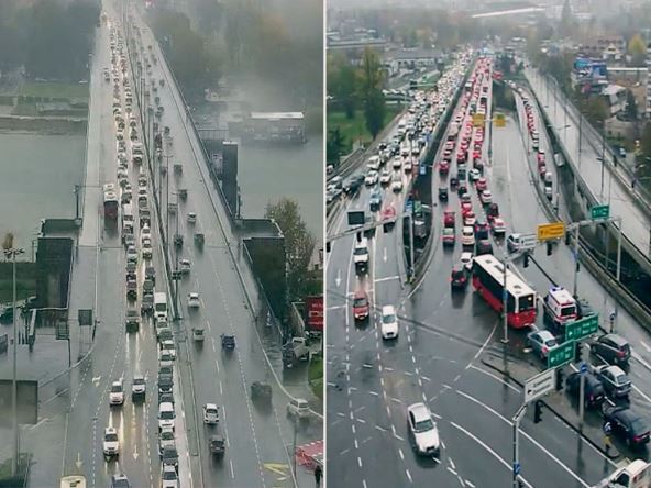 Beograđani su već navikli da kada pada kiša sledi kolaps u saobraćaju u prestonici. Ni ovog jutra nije drugačije.
