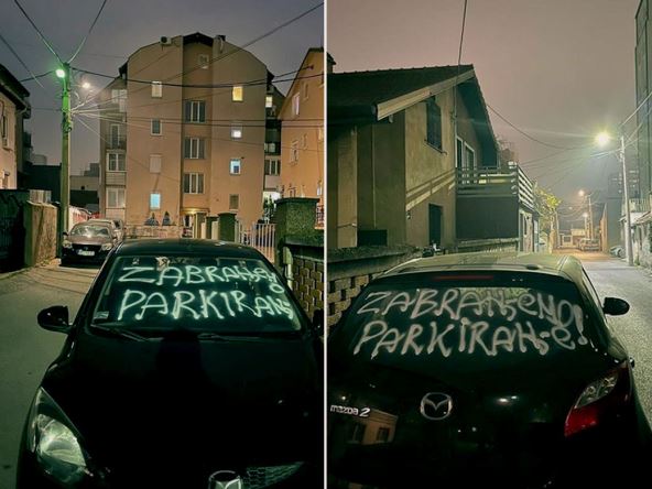 Na Instagram stranici "Moj Beograd" objavljene su fotografije ruiniranog automobila nakon što je nepoznata osoba belim sprejem na prednjim i zadnjim staklima napisala "ZABRANJENO PARKIRANJE". Definitivno je privuklo više pažnja od "klasičnog" dizanja brisača...