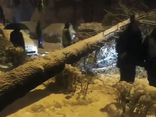 Jedno od brojnih stabala koja je sneg oborio snimljeno je na Miljakovcu, tokom izlaska javnih službi na teren radi otklanjanja ove poteškoće u beogrdaskom naselju.