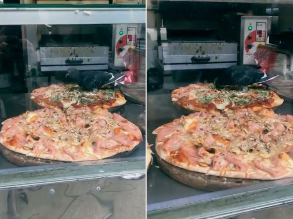 Naime, kako se može videti, po pici koja se nalazi izložena, šeta golub, koji ju je izgazio u potpunosti i pored toga je odlučio da se i sam malo posluži i degustira je. On je nakon nekog vremena odleteo, a dodantna stvar koja je zgrozila je to što niko od zaposlenih nije reagovalo, te se postavlja pitanje da li je pica na kraju završila kao nečija hrana.