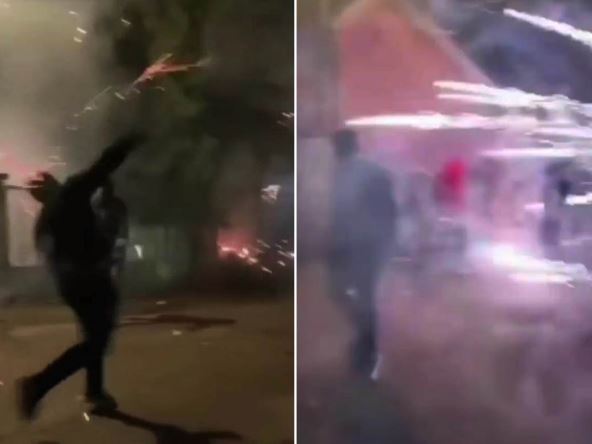 Dok su pirotehnička sredstva pucala pred njihovim telima, na snimku podeljenom ne društvenim mrežama se čuje smeh.