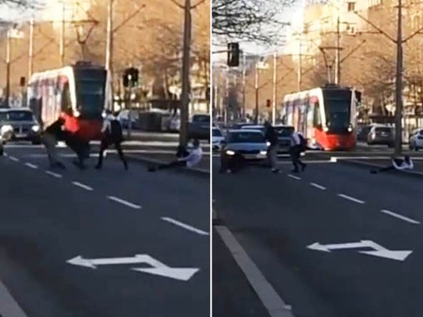 Društvenim mrežama kruži snimak na kom se vidi kako se grupa muškaraca bije nasred ulice na Zvezdari u blizini Đeram pijace.