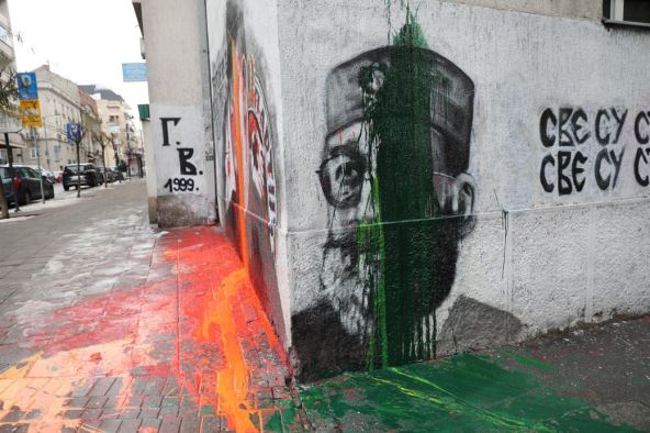 Danas je u centru Beograda u Njegoševoj ulici ponovo uništen mural posvećen Ratku Mladiću, kao i mural generalu Dragoljubu Draži Mihailoviću. Na njih je ponovo bačena farba.