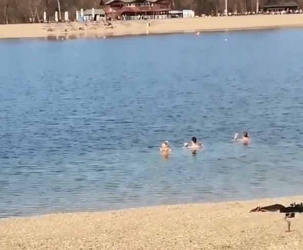 Na snimku koji je mnoge šokirao na društvenim mrežama, vidi se troje ljudi, naizgled devojka i dva momka, kako su ušli u ledenu vodu jezera. Oni nisu plivali već stajali u vodi tako da im je na površini samo glava i digli su ruke u vazduh. Zbog ovoga su mnogi pomislili da je u pitanju neki izazov.