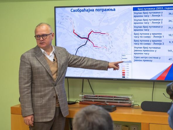 “2030. godine mi ćemo imati dve linije metroa koje su potpuno izgrađene, sa 44 stanice, sa preko 42 kilometra metro mreže i sa rekonstruisanom mrežom BG Voza, tako da ćemo umesto 104 polazaka BG Voza koliko imamo danas imati preko 500 polazaka dnevno, što znači da će sve prigradske opštine biti povezane sa centrom Beograda na 10-15 minuta” rekao je Vesić.