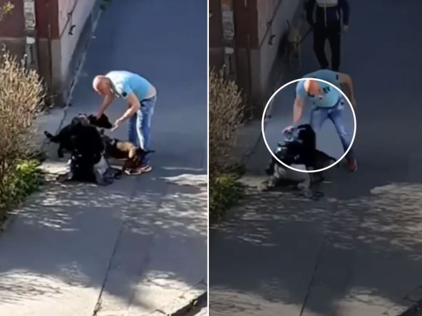 Nakon što konačno dolazi do razdvajanja pasa, muškarac sa snimka ne prestaje da psuje ženu, a onda je potom opet fizička napada i odguruje rukom.