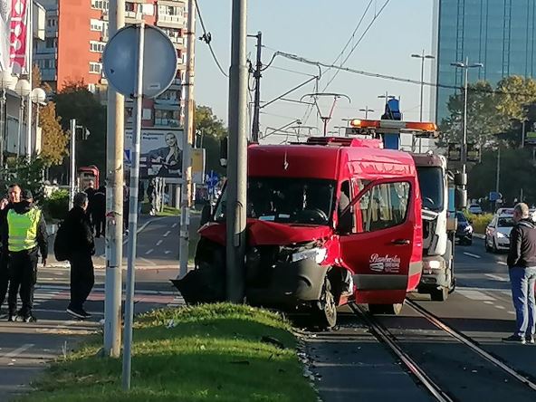 U sudaru kombija i automobila, do kojeg je došlo jutros na Novom Beogradu, povređeno je više osoba. Sudar se dogodio na uglu ulica Milentija Popovića i Zorana Đinđića. Do nesreće je došlo kada je min-bus udario u automobil, pa se zakucao u banderu.