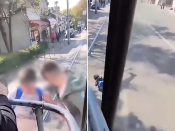 Dvojica dečaka ugrozili su svoje živote kad su se popeli na zadnji deo tramvaja, a još stravičnije je što se na snimku vidi da je stariji maloletnik pao na ulicu nakon što ga je mlađi gurnuo. Dečak je nakon pada, koji je mogao da bude fatalan, ustao i počeo da trči za tramvajem.