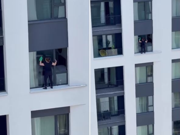 Sve to se dešava na 11. spratu jedne od stambenih zgrada Beograda na vodi, a iza žene, za koju se pretpostavlja da je čistačica, nema nikakve zaštite. Snimak je izazvao gomilu komentara: