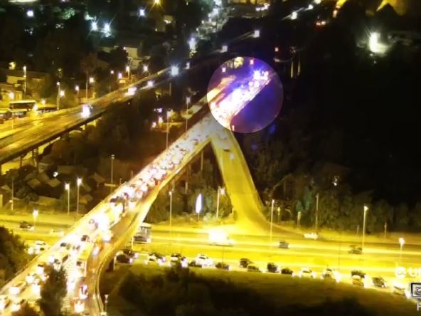 Kako se može videti na NAXI kamerema, stvara se velika gužva na uključenju na most iz grada.