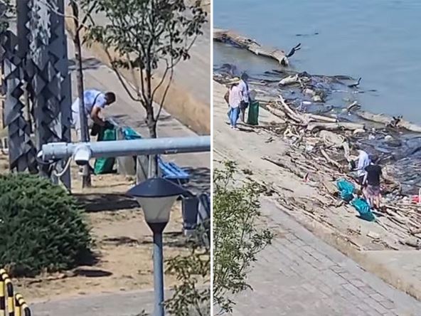 "Da pohvalimo ove ljude što nisu na bazenima i u hladu, nego čiste obalu kod 25. maja", navodi se u objavi na Instagramu uz priložene snimke.
