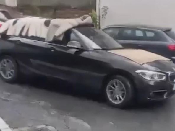 "Zaštita od grada i vremenskih nepogoda, Banovo brdo", stoji u kratkom opisu video-snimka koji je objavljen na društvenoj mreži Instagram i nalogu Moj_beo_grad. Snimak je inspirisao brojne komentatore od kojih mu je većina "skinula kapu" zbog domišljatosti, a deo vozača smatra da mu odmah treba oduzeti dozvolu zbog ugrožavanja bezbednosti u saobraćaju.