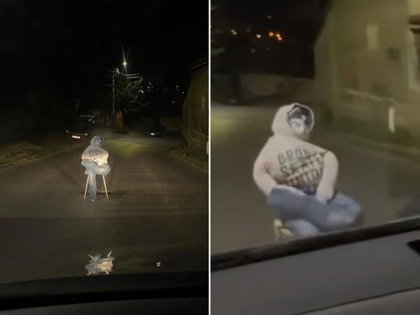 Na društvenim mrežama objavljen je neverovatan snimak koji je nastao u Kaluđerici. Na njemu se vidi stolica koja se nalazi nasred ulice, a na kojoj "sedi čovek". Tako se čini na prvi pogled, međutim reč je o improvizanoj lutki veličine čoveka.