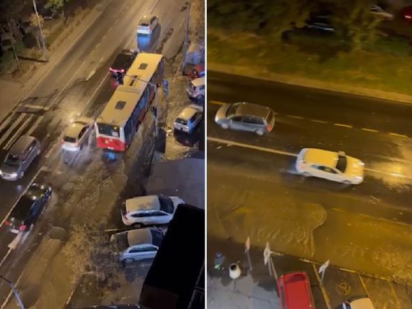 U Bulevaru despota Stefana voda se u velikim količinama sliva niz ulicu, a snimci sa lica mesta su dramatični. Kako može da se vidi voda izbija iz asfalta na delu gde je trotoar, a deo ulice je zbog količine vode poplavljen.