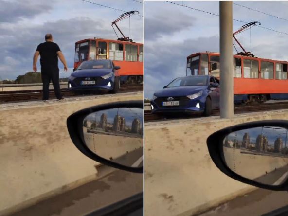 Jučerašnji snimak sa mosta na Adi, na kom se vidi automobil marke "hjundai" na tramvajskim šinama, koji je blokirao saobaraćaj, zbunio je mnoge vozače koji su se kretali ovuda. Između leve trake i šina nalazi se betonska bankina visoka čitav metar, te je misterija kako je vozač završio tu, ako se kretao kolovoznom trakom.