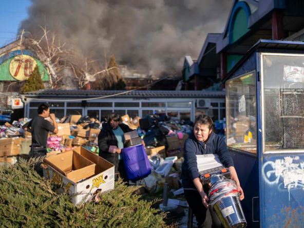 Kako javljaju reporteri MONDA sa lica mesta, čuju se eksplozije ispred tržnog centra, a vatrogasci pokušavaju da nagovore ljude da ne ulaze da spasavaju svoju imovinu jer je situacija kompleksna.