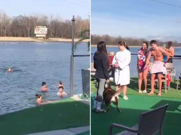 Februar topao, sunčan i sa svojih 17 stepeni zavodljivo je primamio petoro sugrađana da se skinu u kupaće kostime i zarone u hladnu vodu beogradskog jezera - Adu Ciganliju.  Nesvakidašnja scena privukla je pažnju slučajnih prolaznika, koji su ovaj potez snimili mobilnim telefonom.