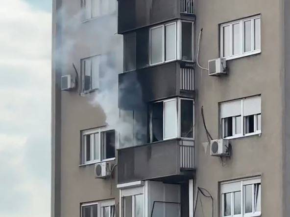 Kako se vidi na objavljenom snimku, plamen bukti iz jednog stana. Ispred stambenog objekta su vatrogasna vozila i patrola policije.