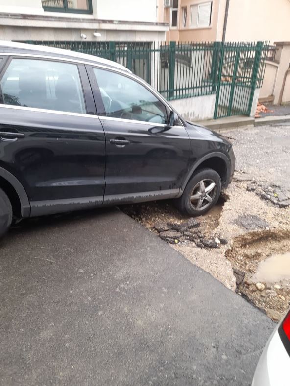 Jedno parkirano vozilo upalo je u rupu, a drugo je, kako se pretpostavlja, u nju upalo tokom vožnje s obzirom na to da je ulica obeležena samo znakom da se u njoj izvode radovi, odnosno da nije zabranjen saobraćaj. Redakciji MONDO stanovnik naselja Vojvode Vlahovića poslao je snimak i fotografije na kome se vidi da je "audi" upao u rupu prednjim delom vozila. Parkirano belo vozilo takođe je upalo prednjim delom. Za sada nema informacija kolika je šteta koja je nastala na vozilima.