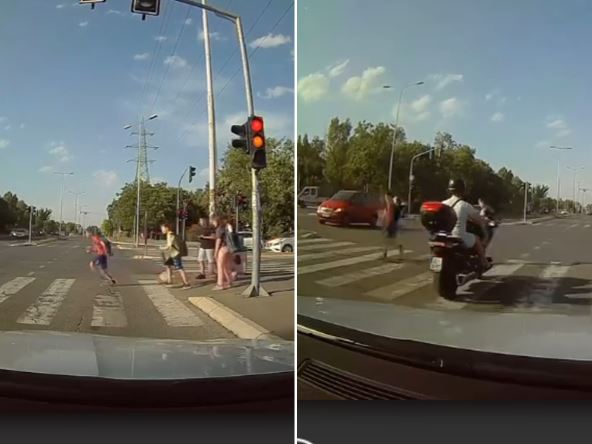 Na snimku se vidi da je motocikl umalo udario jedno dete, na svu sreću je uspeo da prikoči. Motociklista se provukao između automobila koji su stajali na semaforu.