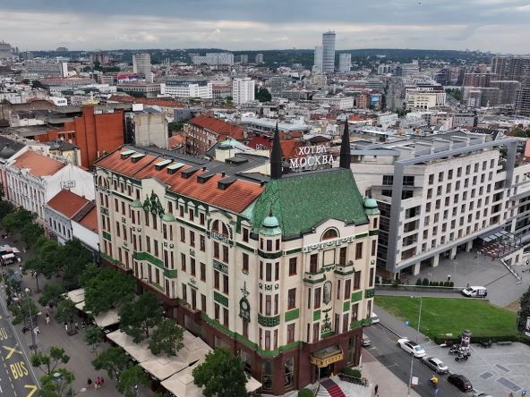 etvorospratnica stara 116 godina nalazi se na uglu Terazija i Balkanske ulice, renovirana je nekoliko puta, a zahvaljujući nesvakidašnjem eksterijeru i bogatoj istoriji, hotel Moskva je jedan od naprepoznatljivijih simbola Beograda.