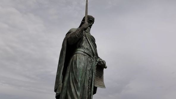 Na prvom prikazu idejnog rešenja bilo je predviđeno da Stefan Nemanja drži krst, kasnije je odlučeno da to bude mač.