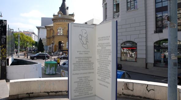 Spomen ploča je otkrivena ispred Palate „Beograd", 1. aprila 2012. godine na platou koji je tada dobio njegovo ime.