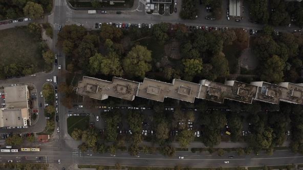 Ona ima cik-cak konstrukciju, a uglovi stambenog objekta, ako se posmatraju iz vazduha podsećaju na zupce testere.