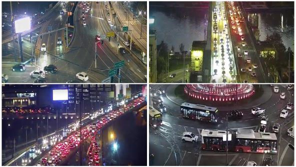 Najveća gužva kod Ušća, iz pravca Novog Beograda ka centru grada. Kolaps je nastao i na Slaviji, a veliki broj vozila nalazi se i na Pančevačkom mostu.