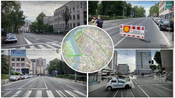 - od 9 do 15 časova, biće obustavljen saobraćaj i zauzet kolovoz u ulicama: Brankova, most u produžetku Brankove ulice, Bulevar Nikole Tesle, Karađorđev trg, 22. oktobra, Aleksandra Dubčeka, Bulevar Mihajla Pupina, Omladinskih brigada, Bulevar Milutina Milankovića, Milentija Popovića, Bulevar Zorana Đinđića, Španskih boraca, Bulevar Mihajla Pupina, Brankova, Kraljice Natalije, Kneza Miloša (od Kraljice Natalije do Kralja Milana), a zatvaranje za saobraćaj će se vršiti u skladu sa dinamikom prolaska takmičara.