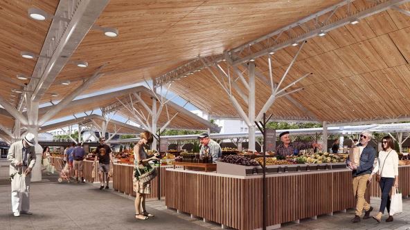 Prva celina obuhvatiće najveći deo pijace sa 510 tezgi, četiri pjacete sa česmama i klupama i biće natkrivena nadstrešnicom. Druga celina će se fokusirati na gastronomske objekte, uključujući prodaju prehrambenih proizvoda i pripremu gotove hrane, dok je treća predviđena za objekat mlečne hale i nalaziće se na uglu Njegoševe i Ulice Maksima Gorkog.
