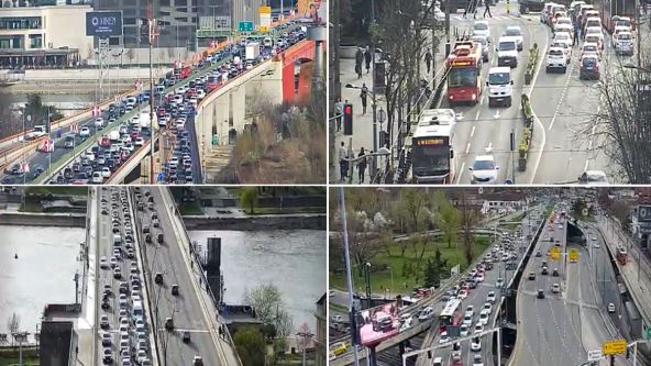 Najgore je na mostovima. Kako se može videti na "NAXI" kamerama, na Brankovom mostu je veća gužva u smeru iz Novog Beograda ka centru grada, dok na Gazeli vozila mile iz pravca grada ka Novom Beogradu.