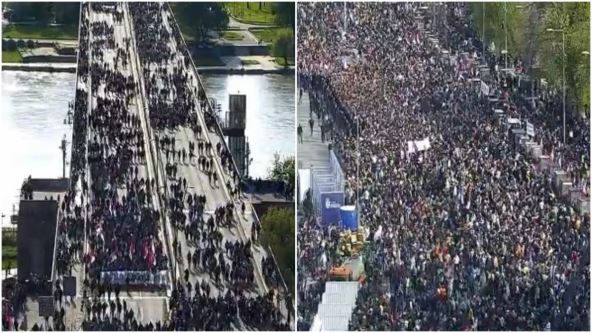 Zeleni venac, kao i Brankov most, zatvoreni su za saobraćaj, a preko njega trenutno prelaze građani koji su se uputili na skup ispred Skupštine Srbije, čiji centralni događaj kreće u 19 časova.