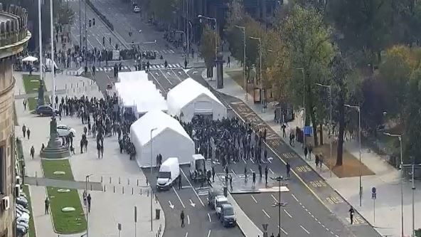 Istovremeno se u kampu kod Skupštine Srbije okupljaju ljudi tako da dve grupe građana sada odvaja kordon policije.