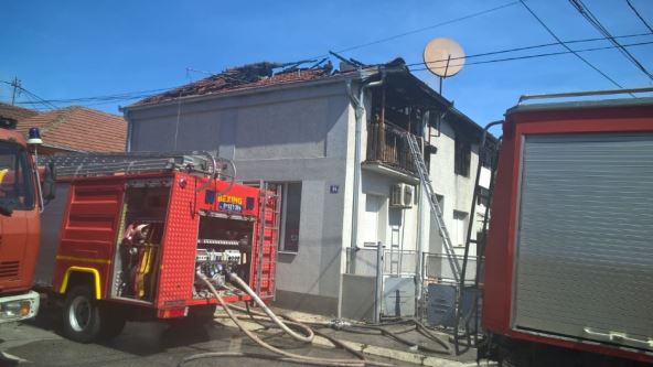 Više vatrogasnih vozila pokušava da obuzda vatru koja se munjevitom brzinom širi a gust dim nadvio se na taj deo grada.