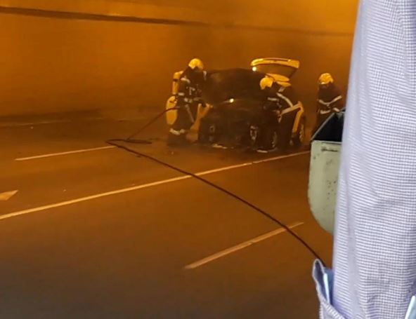 U vozilu su bile dve osobe koje su srećom izašle na vreme, a izgoreo je prednji deo automobila, prenosi "Kurir".