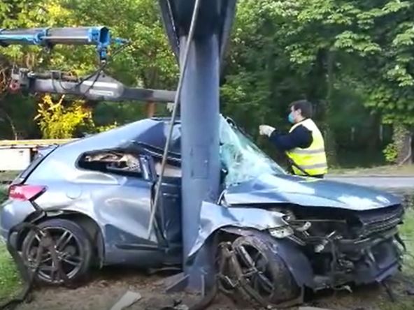 Vozač je, prema navodima medija, udario u bilbord, nakon čega se automobil "obmotao" oko stuba.
