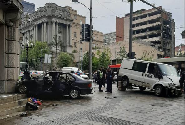 U saobraćajnoj nezgodi ispred Vlade Srbije učestvovali su kombi vozilo i putnički automobil marke "BMW".