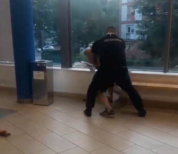 Čovek koji se sukobio sa pripadnicima obezbeđenja nije nosio masku, iako stoji upozorenje na kome piše da je obavezna mera nošenje zaštitnih maski.