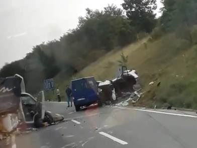 Kako saznaje "Blic" posle sudara kamiona i putničkog automobila, jednog vozača su jedva izvukli iz smrskanog automobila sa težim povredama ruku i nogu.