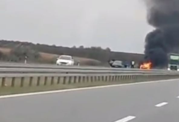 Zapaljeni automobil se nalazi na autoputu u smeru ka Beogradu.