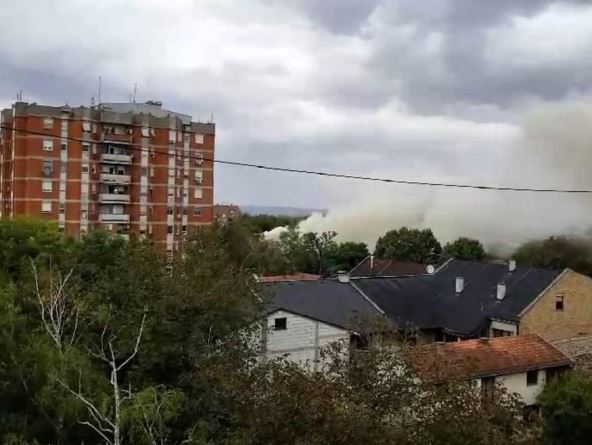 Vidi se pristustvo vozila vatrogasne službe, a vatrogasci pokušavaju da savladaju vatrenu stihiju.