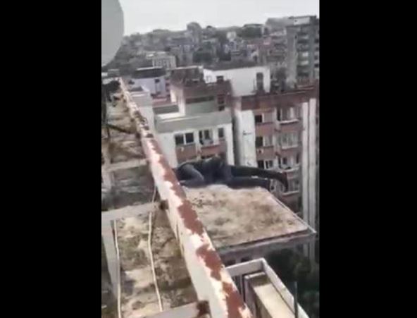 Nesrećni muškarac je prvo visio na krovu zgrade, a kada su vatrogasci pokušali da dođu do njega, on je pao sa krova.