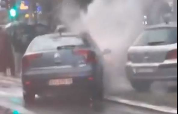 "Policija gasi zapaljen auto", napisao je korisnik Twitter-a u svojoj objavi sa video snimkom sa mesta nesreće.