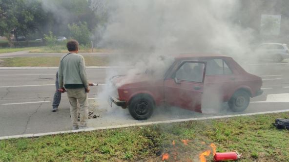 Automobil u kom su se nalazili muškarac i žena, zapalio se danas nešto posle 13 časova.