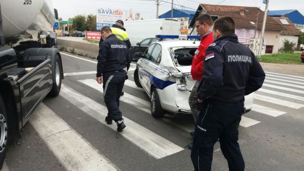 "Tačno je da se u popodnevnim časovima desila saobraćajna nesreća na Zrenjaninskom putu. Iz još uvek ne utvrđenih razloga, cisterna je naletela na službeno vozilo policije. Na svu sreću povređenih nije bilo a naneta je samo materijalna šteta! potvrđeno je iz policije.