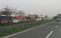 Devojka koja je vozila automobil u srednjoj traci je uspela da ga izbegne i ne udari, ali autobus nije mogao, iako je vozač pokušao da skrene u desno ka trotoaru.