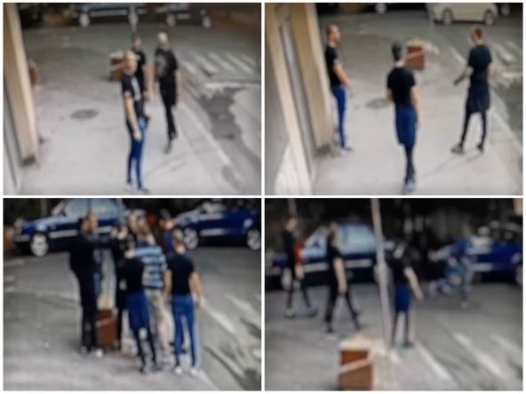Na snimku se vide trojica mladića koji stoje ispred ulaza jedne zgrade, a zatim dolazi žrtva na mesto događaja.