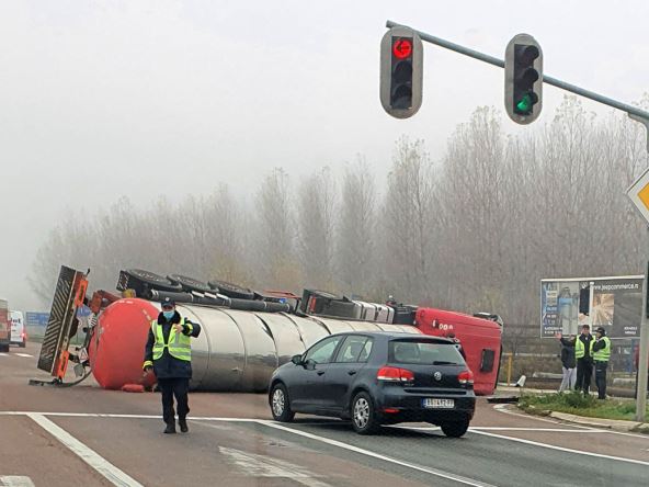 Iz MUP-a je potvrđeno da se kamion prevrnuo na bok, a dodali su i da je tom prilikom oborio semafor na putu.
